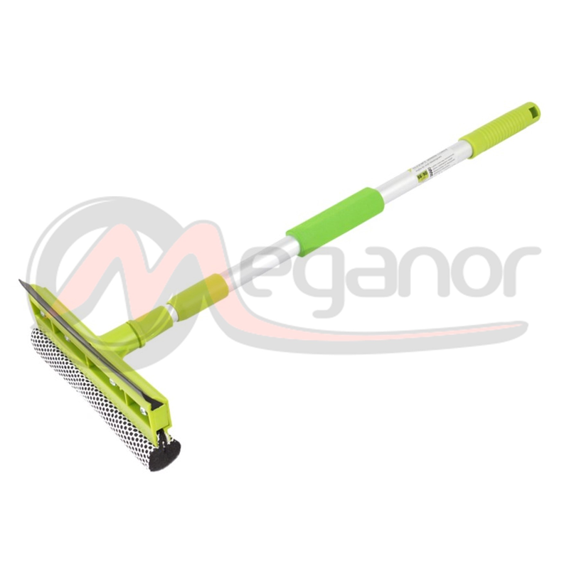 Rodo em alumínio leve. Equipado com cabo macio, de espuma e antiderrapante que garante uma aderência estável. Com a ajuda da alça extensível, podemos lavar facilmente janelas altas.