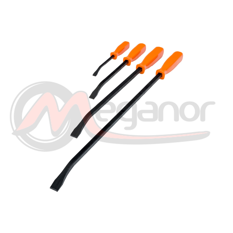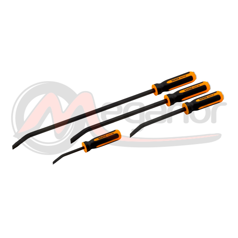 Conjunto de alavancas longas para uma fácil alavancagem e dobragem / Componentes do conjunto / - BPBL00900 / - BPBL30900 / - BPBL70600 / - BPBL90600 / Quatro ângulos das pontas diferentes para adaptar a diferentes situações de trabalho, oferecendo um desempenho antideslizante / Grande comprimento para obter um torque superior e para ter acessibilidade a áreas profundas dentro do veículo / Cabo em dois componentes duradouro [PP+TPR] para um melhor aperto e proteger o utilizador final / Feito de Cr-Mo de alta resistência com acabamento cromado, secção de 225 mm2 / Tampa metálica para permitir que a alavanca seja atingida por um martelo