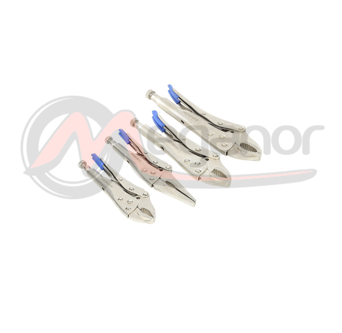 Um conjunto de alicates de pressão Morse pode ser usado principalmente em oficinas automotivas, mas também em encanamento, soldagem, mecânica e serralheria. /Características: Mandíbula inferior autotravante - o eixo da articulação da mandíbula permite uma aderência adequada ao elemento, garantindo a máxima aderência sem escorregar ou deslizar./O mecanismo de liberação de segurança permite a fácil abertura das mandíbulas, ao mesmo tempo que protege contra liberação acidental./ O parafuso de ajuste proporciona uma liberação controlada e segura materiais individuais com segurança./ Conteúdo do conjunto: Chave de 250 mm Chave de 190 mm - Chave de 170 mm - Chave de 125 mm - Capa prática.
