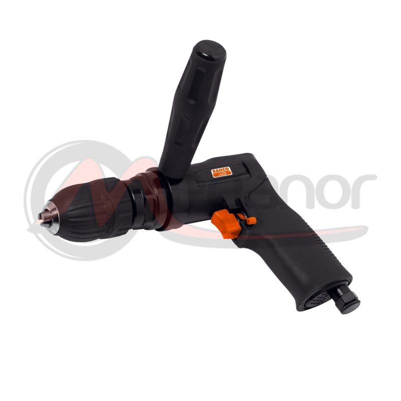Broca reversível de 13 mm|Carcaça de composto|Punho de borracha|Alavanca de inversão/avanço rápido|Saída de ar no cabo|Bucha rápida|Cabo de apoio incluído
