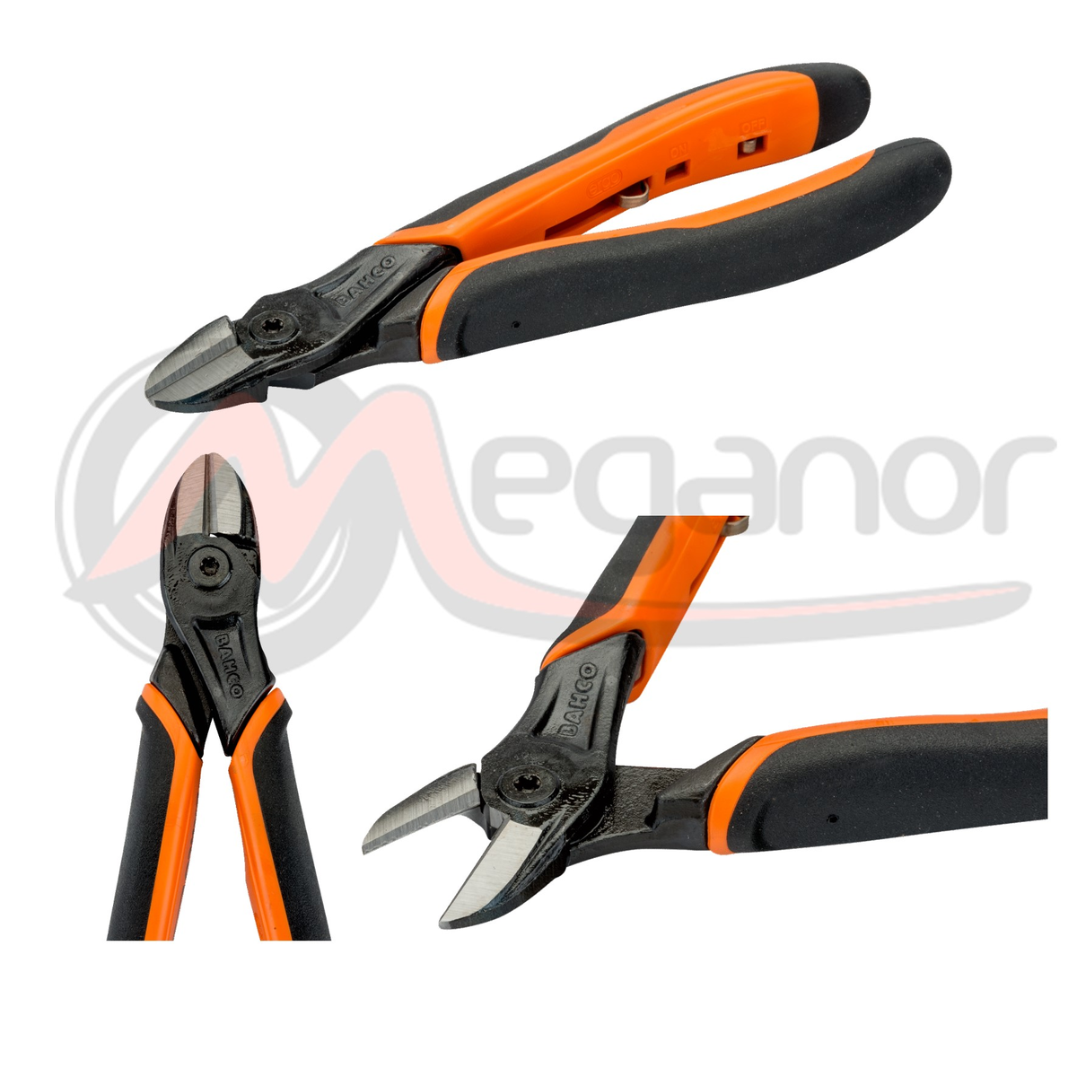 Alicate de corte lateral desenvolvido de acordo com o processo científico ERGO™|ISO 5749|Acabamento: acabamento em preto, com tratamento anticorrosão|Material: liga de aço de alto desempenho, cabos ERGO™, com combinação de 2 componentes, superfície termoplástica em polipropileno duro, o que confere uma aderência superior|Superfícies de corte endurecidas por indução|Bordos progressivos: raio de corte progressivo ao longo da superfície de corte, para cortar materiais duros perto da junta, como cordas de piano, e para cortar materiais macios perto da ponta, como arame com isolamento de plástico|Junta de parafuso que proporciona excelente funcionamento e alinhamento preciso das superfícies de corte|A distância da junta ao centro das superfícies de corte é reduzida: maior alavancagem e maior capacidade de corte|Maxilas arredondadas permitem melhor acessibilidade em espaços confinados|Equipado com uma mola de retorno patenteada com função on/off|IP: embalagem industrial