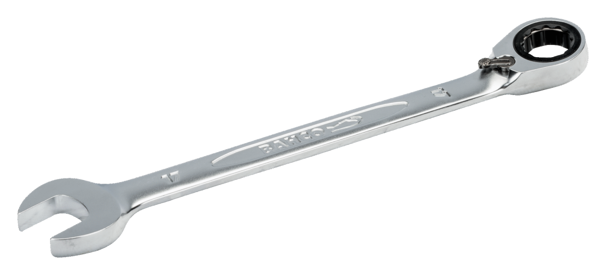 Chave boca luneta com roquete para engrenagem em tamanhos métricos|Normas: ISO 1711-1 e DIN 3113|Material: liga de aço de alto desempenho|Ângulo de boca de 15° com cabeça mais fina para melhor acessibilidade|Luneta com roquete para aplicações de elevada produtividade|Perfil de acionamento direto de 12 pontos que aumenta a vida útil de parafusos e porcas|Ângulo de ação de 5°|Botão para mudança rápida de direção para a direita ou para a esquerda|Marcação de tamanho maior e bidirecional, para fácil identificação|O acabamento micromate cromado fornece uma superfície de elevada qualidade