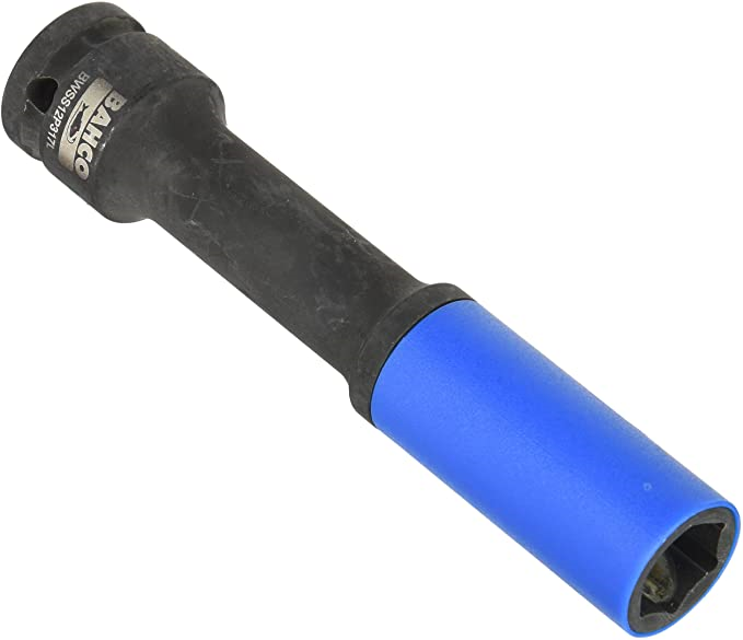 Graças ao longo alcance de 150 mm elimina a necessidade de uma extensão para rodas com offset largo ou baixo|A manga de proteção de plástico em parede de tomada evita danos durante a instalação ou remoção de rodas|Proteção de plástico dentro da chave de caixa para garantir a proteção das porcas de rodas|Tamanho do encaixe: 1/2\". 150 mm de comprimento|3 tamanhos disponíveis: 17 mm (Azul), 19 mm (Amarela) e 21 mm (Vermelha)