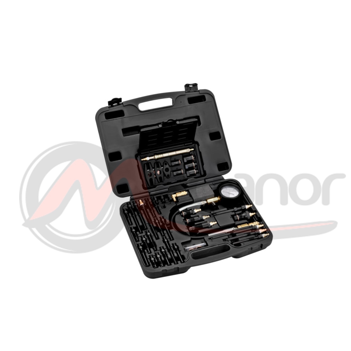 Aplicação: medir a pressão na câmara de combustão do motor|Abrange a maioria dos motores modernos, consultar a lista de aplicações completa no manual do utilizador; http://extranet.snaeurope.com/Documents/2013/6/BE540_812.pdf|Inclui um indicador grande de 60 mm com gama de funcionamento de 0 - 69 bar/0-1000 psi com uma mangueira de borracha enrolada, com ligação angular reta e uma vasta seleção de velas incandescentes e adaptadores de injetor em aplicação de garra e grampo|Sistema de colar permite uma fácil correspondência de perfil do injetor|Conteúdo:|Adaptador de 90°|20 velas incandescentes falsas|Cinco adaptadores de injetor|Dois conjuntos de vedantes/anilhas e bocais de substituição|Um conjunto de adaptador de grampo e garra|Seis adaptadores de injetor com grampo adequados para Automóvel|Carrinha|Camião|Autocarro|Injetores para trabalho agrícola e marítimo. Adequado para usar onde o injetor é mantido no lugar por um grampo/garra/ponte.