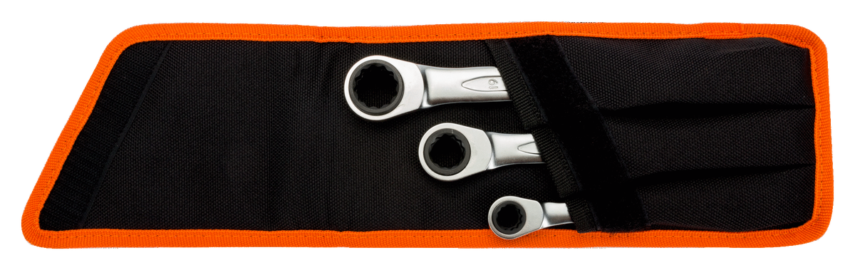Conjunto de chaves de caixa com roquete 4 em 1 em tamanhos métricos|Conjuntos embalados numa prática bolsa que pode transportar no seu cinto