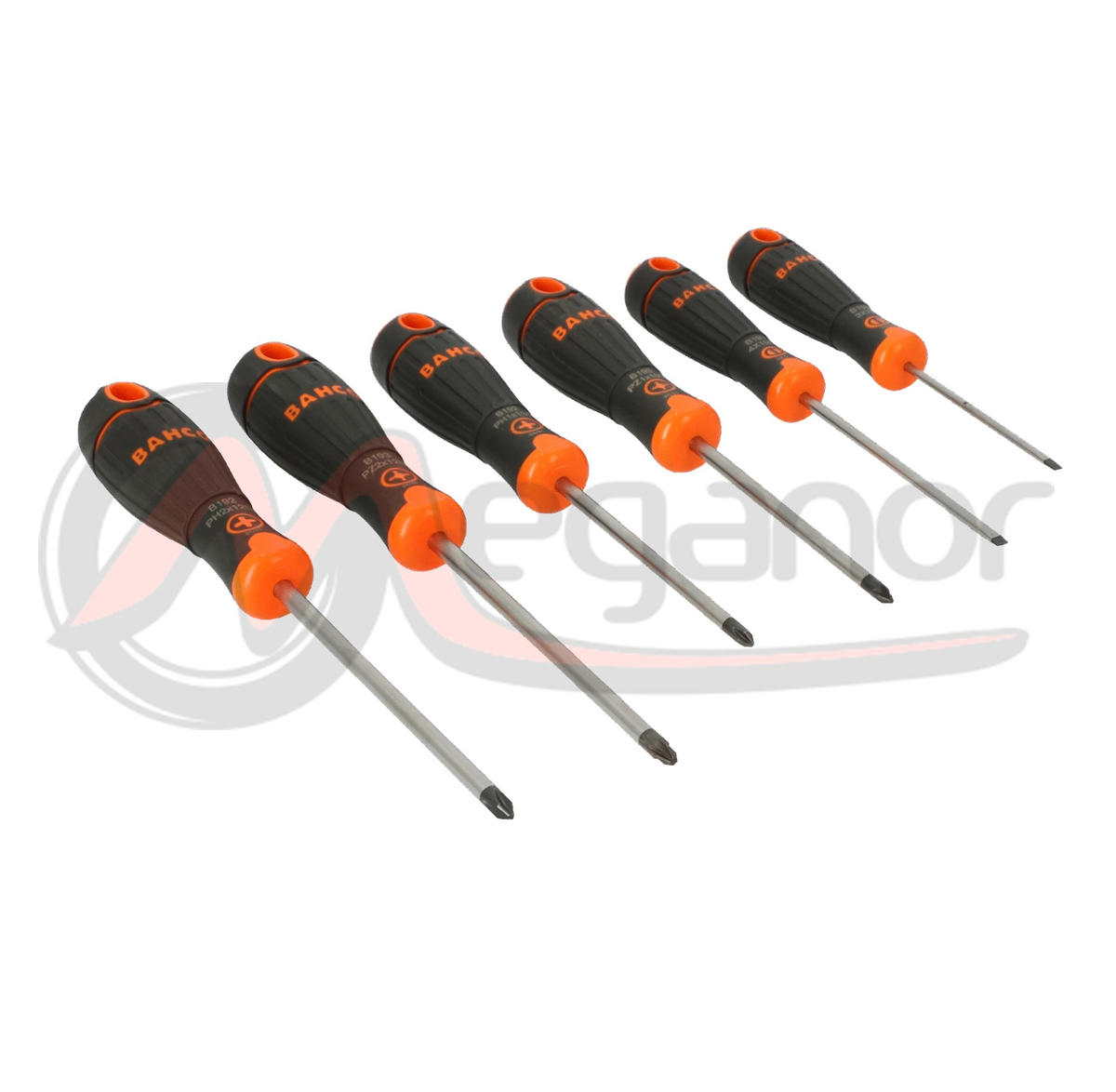 Conjunto de chaves de parafusos BahcoFit, 6 peças|Para parafusos de fenda, Phillips e Pozidriv|em caixa de cartão