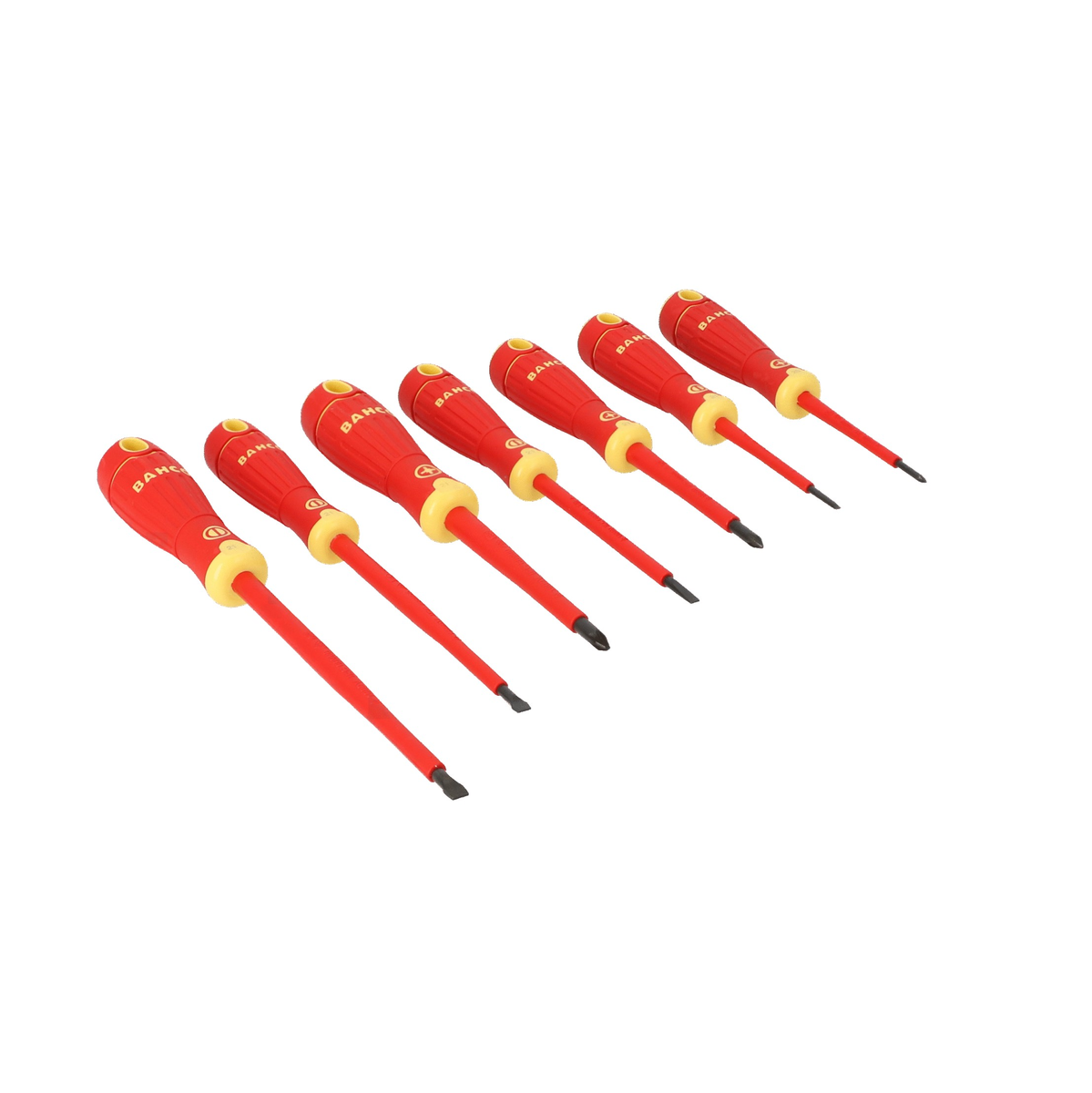 Conjunto de chaves de parafusos isoladas BahcoFit, 7 peças|Para parafusos de fenda e Pozidriv|Em caixa de cartão