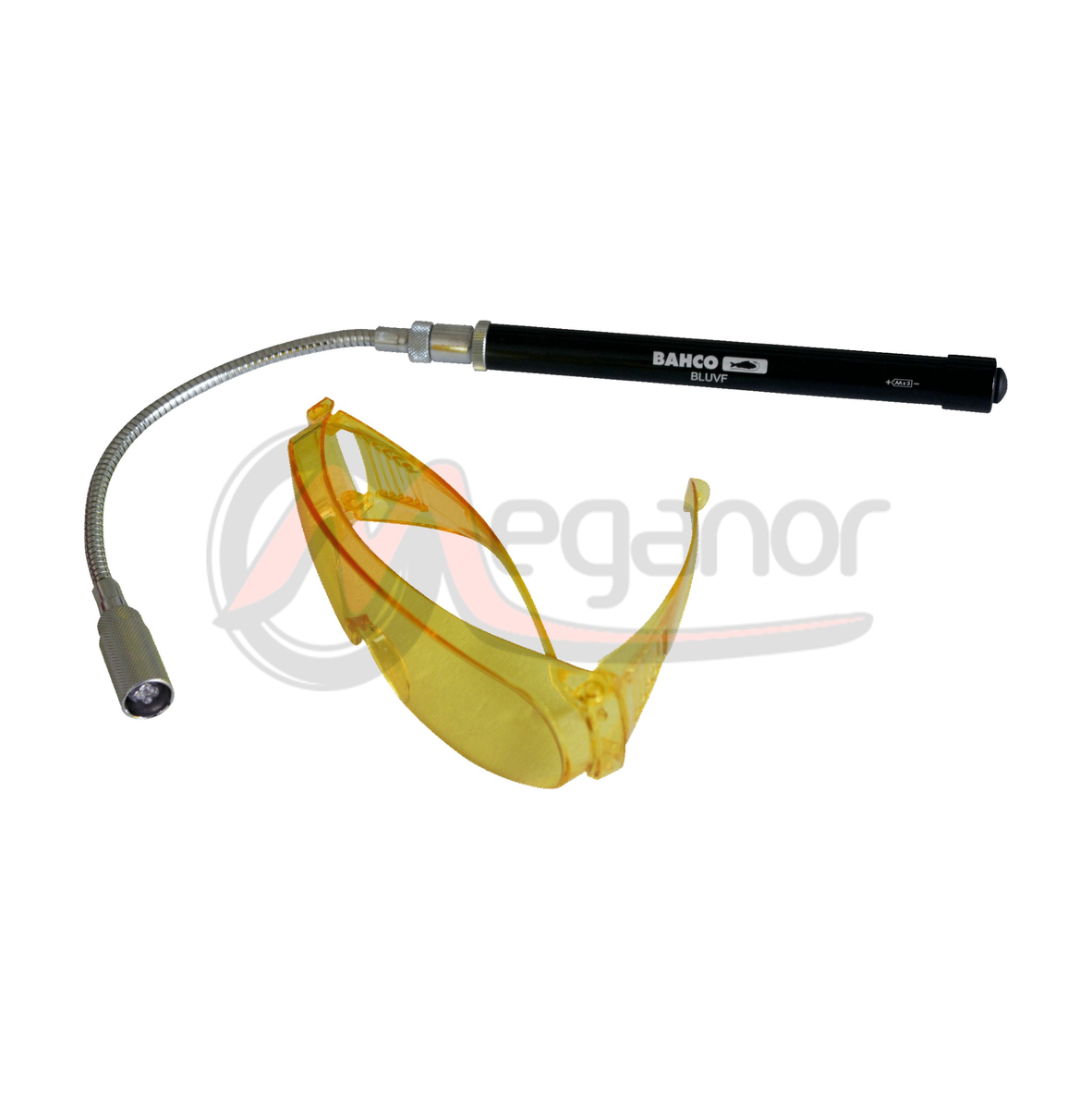 Usada para detetar fuga de gás ou de fluídos do ar condicionado|Inclui uma luz LED UV e óculos de segurança + 3 pilhas AA|Extremidade flexível de alumínio de 255 mm|Cabo de alumínio de 200 mm