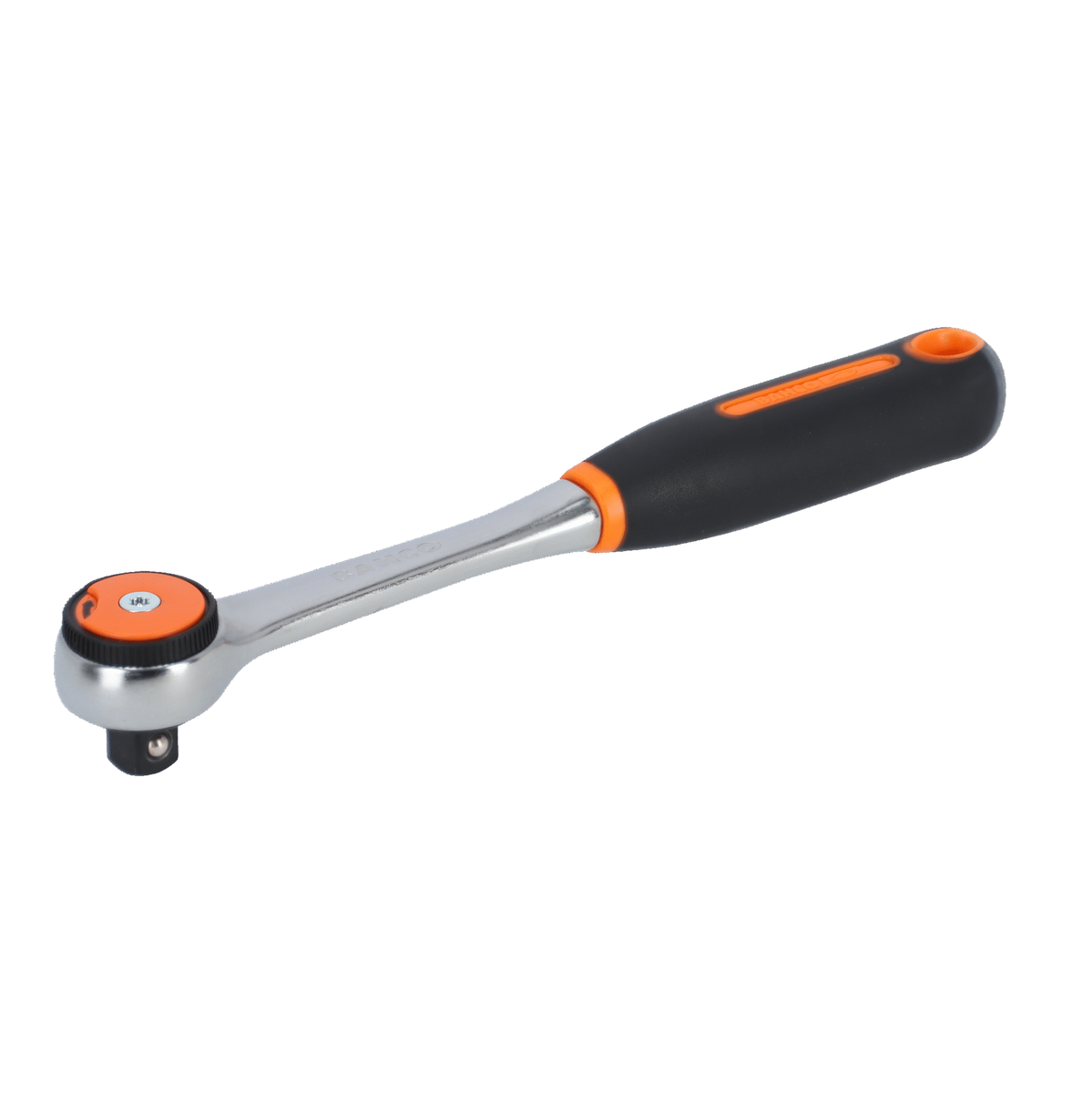 Roquete de 1/2\", reversível|72 dentes/ângulo de ação de 5°|Liga de aço de alto desempenho|Acabamento de polimento fino|Seta indicadora de direção|Patenteado|Peças de substituição disponíveis|ISO 3315/1174-2|DIN 3122/3120; UNE 16512|SB: embalagem individual