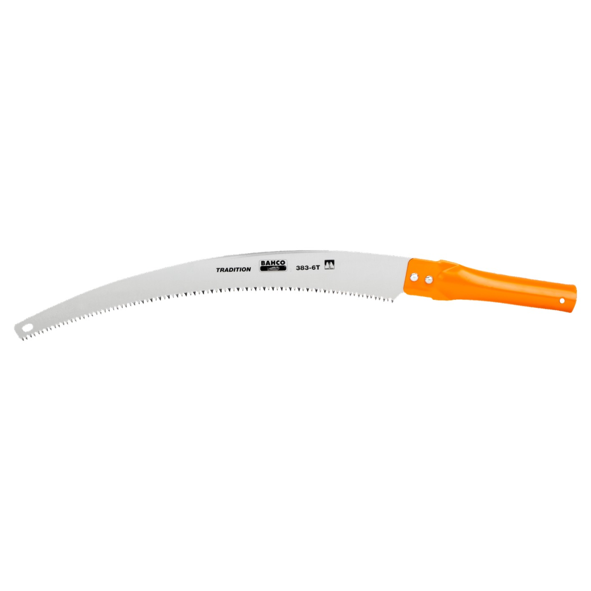 Serrote de poda com punho tubular de aço, permitindo a sua adaptação a extensões de 25 mm (1\") Ø. Adaptam-se ás extensões : AP-2.7M, AP-3M, AP-5 e FP-3M.. Para madeiras macias tais como pinho e abeto, o serrote 384-5T (5 dentes p/ polegada) é o mais recomendado, devido à sua agressividade.. 383 com dentes temperados.. 384 com dentes afiáveis.