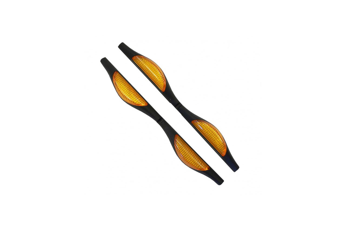 58161 - Batentes de porta em material flexível. Possuem tamanho universal, o que possibilita a montagem não só na porta do carro, mas também na escotilha do veículo. Os refletores fixados nos para-lamas tornam a porta aberta mais visível.
