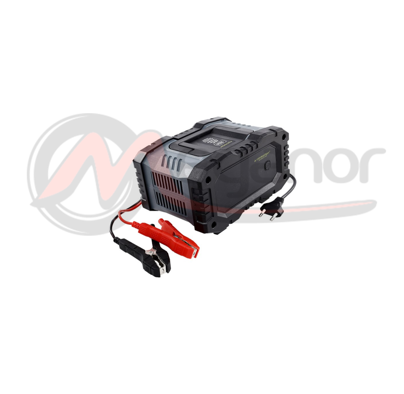 Para baterias de gel, LiFePO4, chumbo-ácido, EFB, AGM, SLA/ Painel de controle com display LCD retroiluminado/ Fiação com grampos de crocodilo totalmente isolados/Proteção contra superaquecimento, sobrecarga, curto-circuito e polaridade reversa/Indica o status da carga, parâmetros de carga e conexão incorreta à bateria / Controlado por microprocessador - processo de carregamento multifásico e totalmente automático /7 estágios de carregamento /Modo de carga lenta automática