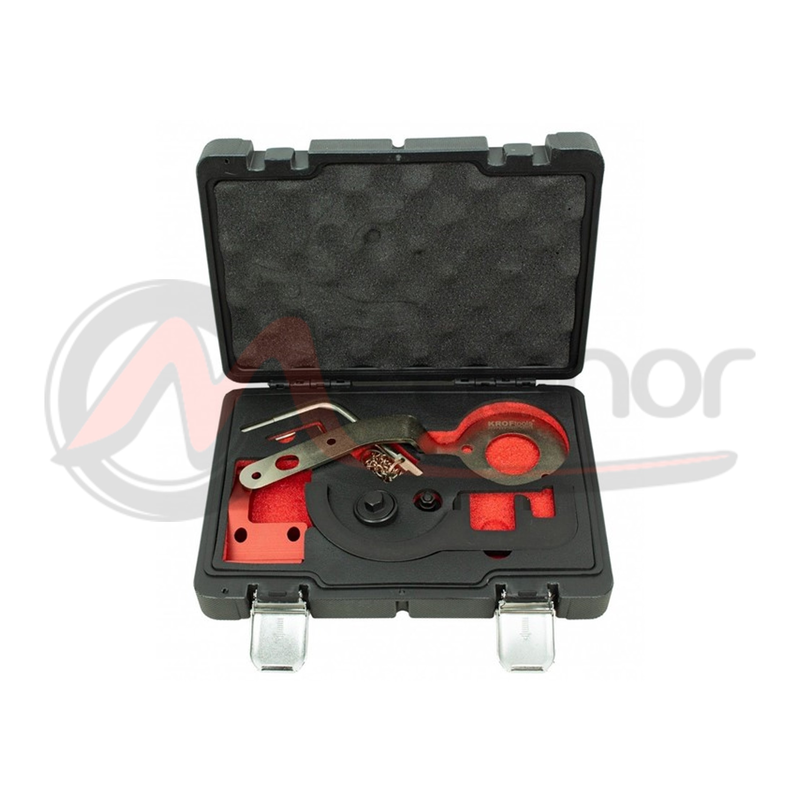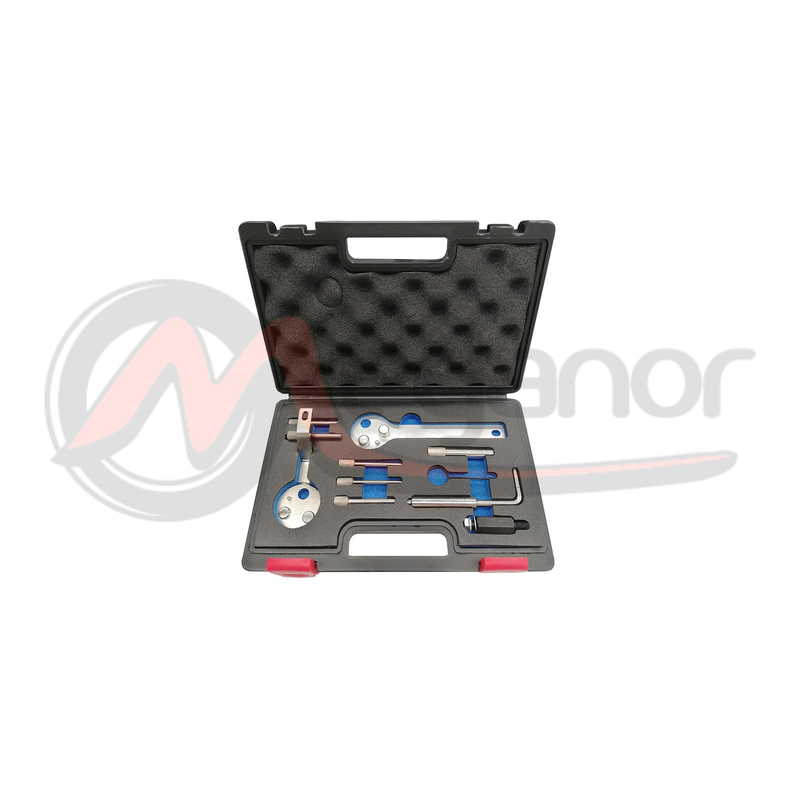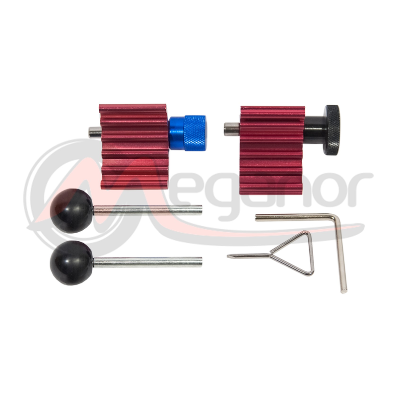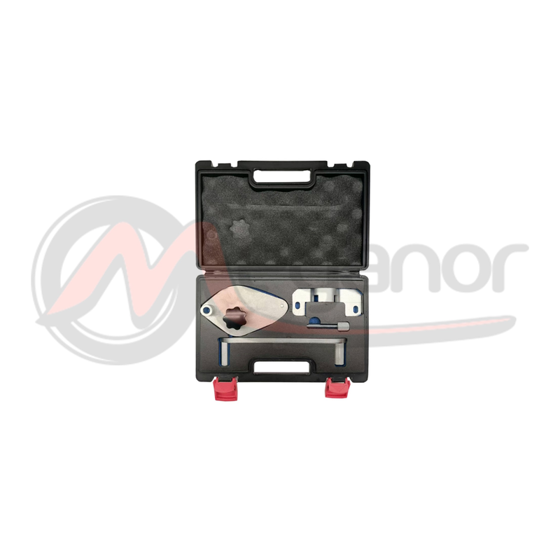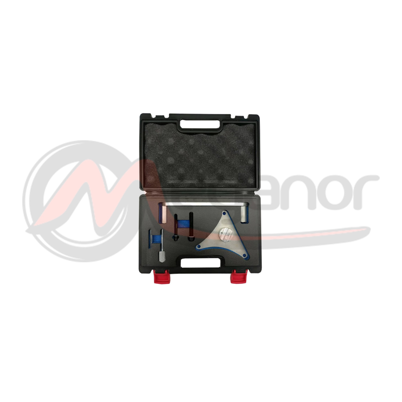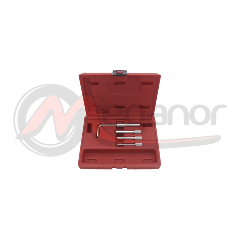 Para motores a gasolina Mercedes 1.6 e 2.0 com injeção direta. Contém alinhadores/bloqueantes da árvore de cames e uma chave para os ajustadores da árvore de cames.