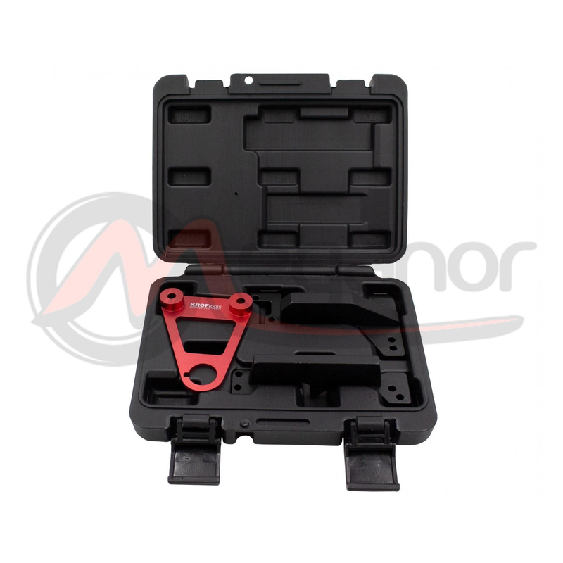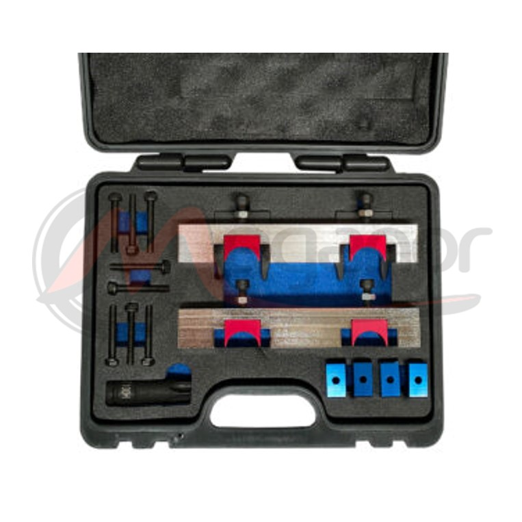 Uma vez o motor removido, o kit de ferramentas permite que o utilizador bloqueie a árvores de cames e a cambota em posicão sincronismo para substituicão da corrente