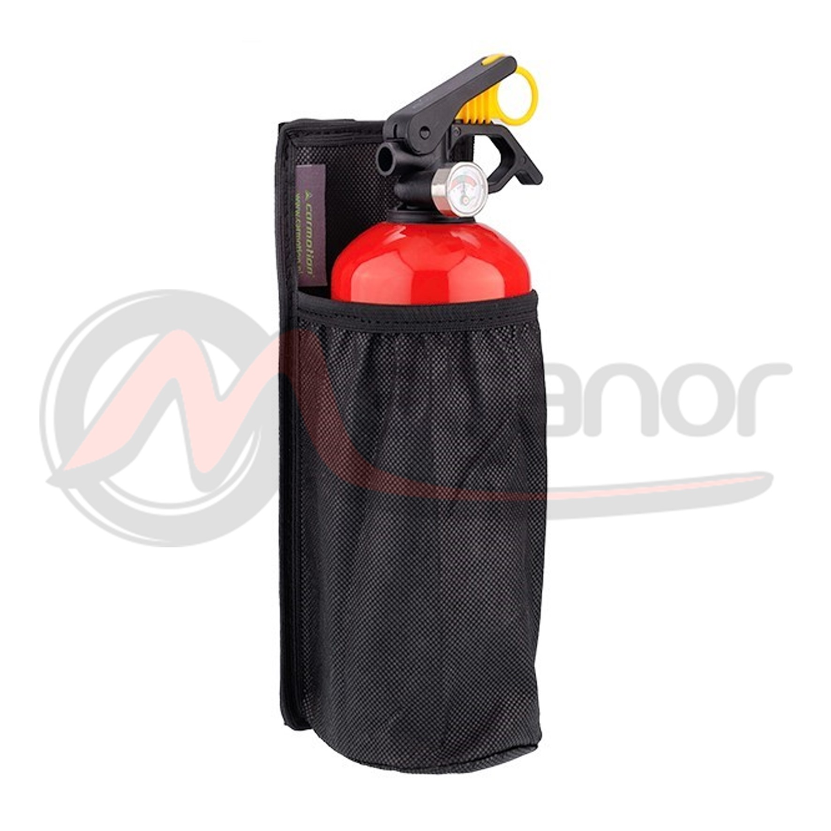 O bolso é projetado para um extintor de até 10cm de diâmetro.