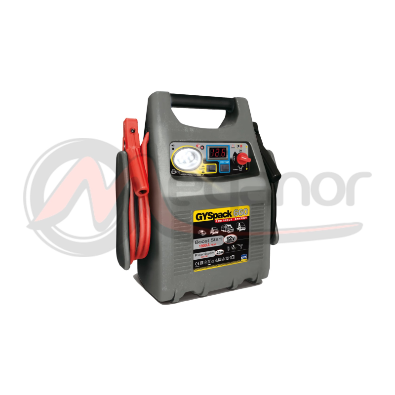 Arrancador potente que liga veículos de 12 V até 500 cv, e veículos de 24 V até 1500 cv, sem bateria|Extremamente potente. Graças às 2 baterias em espiral AGM de chumbo-ácido, com chumbo puro, são extremamente eficientes no fornecimento de alta energia a uma elevada amperagem de impulso quase instantaneamente (a amperagem de impulso é o que é necessário para o arranque do veículo)|Amperagem de impulso: 12 V: 3200 A / 24 V: 1600 A|Amperagem de pico: 12 V: 7750A / 24 V: 3875 A|Proteções de segurança. Proteção de polaridade invertida que protege as unidades se os grampos forem ligados no sentido inverso emitindo um alarme sonoro. E equipado com uma proteção de fusíveis de 500 A que pode ser derretida a seguir a um curto-circuito ou a uma tentativa de arranque demasiado longa, por exemplo.|Equipado com um painel de controlo muito fácil e intuitivo que contém um voltímetro, um fusível externo de 16 A e uma saída de 12 V/CC|Este arrancador é fornecido por um carregador inteligente, que é 100% TOTALMENTE AUTOMÁTICO E CONTROLADO POR MICROPROCESSADOR, assegurando pleno controlo durante a carga e mantendo as baterias dentro do arrancador|Os cabos de arranque de elevada qualidade de 1,95 metros de comprimento com secção de 70 mm2, com isolamento duplo oferecendo um comprimento ideal e extremamente flexível, beneficiam de uma elevada condutividade bem como de uma forma perfeita resistente ao manuseamento frequente|Equipado com grampos de alta resistência, grampos completamente isolados com abertura de 54 mm de largura, capaz de transmitir cada ampere à bateria que precisamos fazer arrancar.|Os grampos estão equipados com uma ponte de cobre que assegura a difusão da corrente em ambas as maxilas de bronze|Uma única peça robusta feita de polietileno rotomoldada quase inquebrável e resistente a todos os agentes de peças usados numa garagem, incluindo o líquido dos travões. Este invólucro inclui uma válvula de segurança de perda de gás que previne a acumulação de gás e reduz drasticamente o risco de explosão do arrancador|O conector para selecionar a tensão de 12 V ou 24 V, é composto por um dos mais robustos conectores industriais no mercado e está equipado com um cabo muito confortável para facilitar a operação de ligar e desligar|Temperatura de funcionamento: -20 °C < 50 °C|Com certificação CE