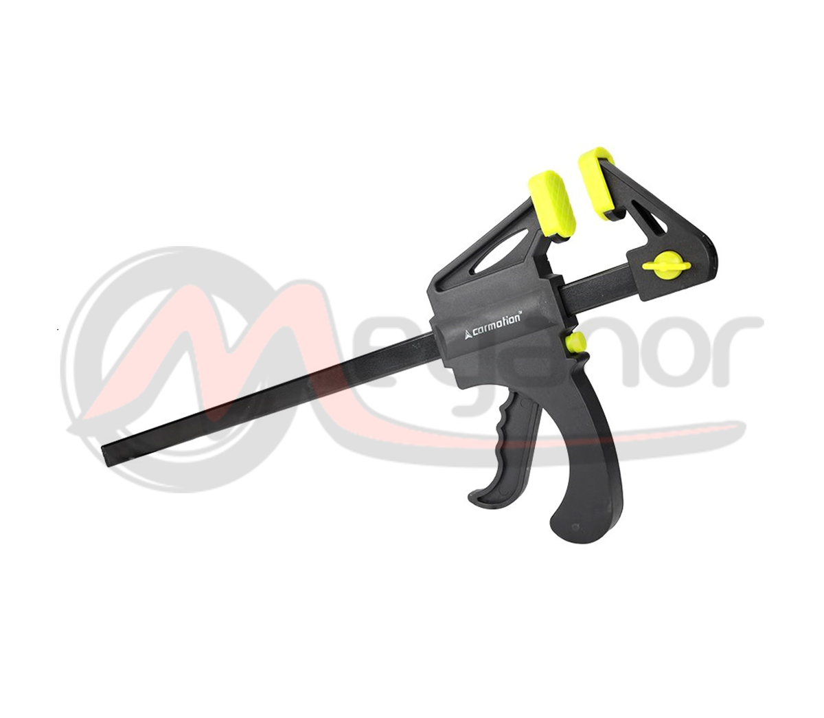 Grampo de montagem para pistola (tipo F) (12\" / 300 mm) concebido para montar e segurar diversos materiais durante a sua montagem. Equipado com guia de aço e maxilas deslizantes, com botão de aperto rápido, fabricado em material de alta qualidade. O grampo irá trabalhar após a conversão como espalhador.