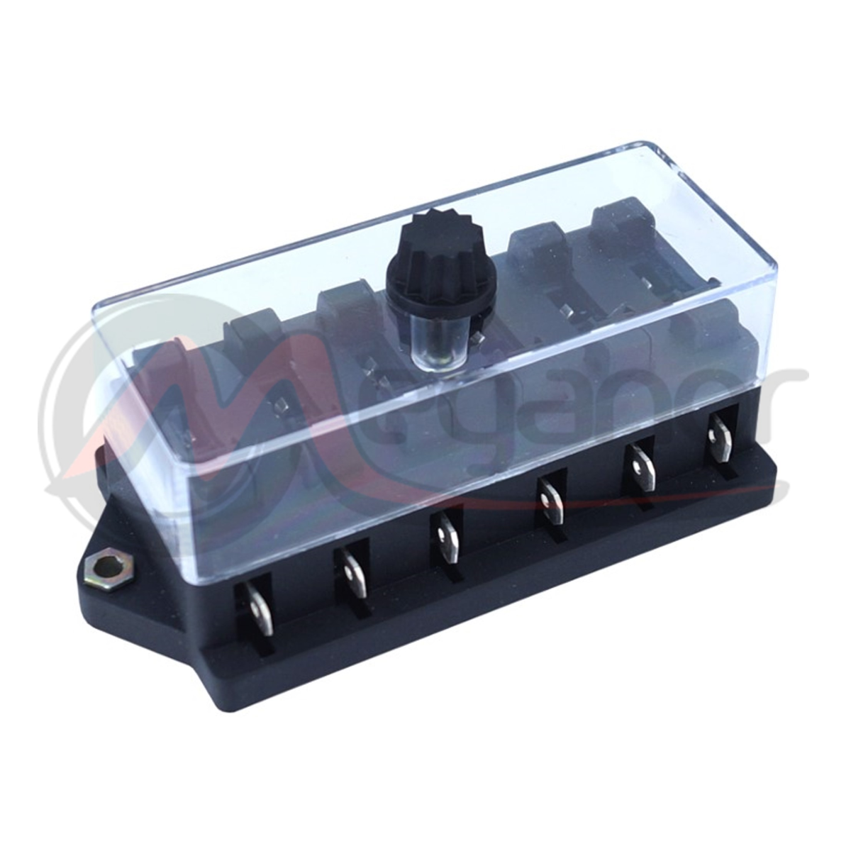 -Esta caixa de fusíveis universal com 6 compartimentos é compatível com fusíveis de lâmina padrão. Uma vedação de borracha na tampa garante uma vedação firme. A caixa pode ser usada na maioria dos veículos.