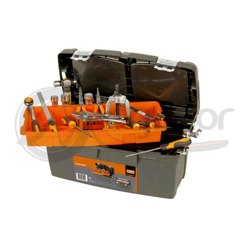 Caixa de ferramentas estilo consola|Pega dobrável para armazenamento compacto|Ao puxar pela pega, a caixa abre facilmente, permitindo o acesso imediato a todos os compartimentos de ferramentas|3140N com 3 compartimentos|3141N com 5 compartimentos|3149 com 5 compartimentos|3149-OR com 5 compartimentos