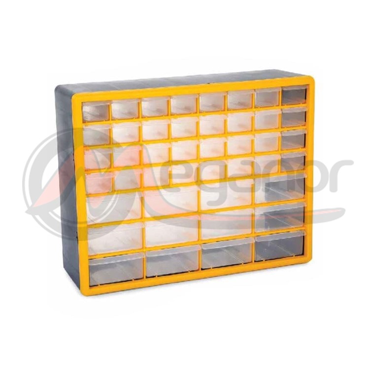 Fabricada em polipropileno (PP) virgem:|Torna a caixa resistente, mesmo se usada em condições extremas|Resistência a temperaturas baixas e altas: -20 °C/ +50 °C|Capacidade de carga estática: esta torre não se destina a ser usada como degrau|Inclui: divisores de caixa externos, caixa superior e tabuleiro interno|Bloqueável por cadeado|Pega dobrável|Trincos metálicos e componentes essenciais galvanizados|Rodas: 135x37 mm feitas de plástico de polipropileno com um único eixo galvanizado