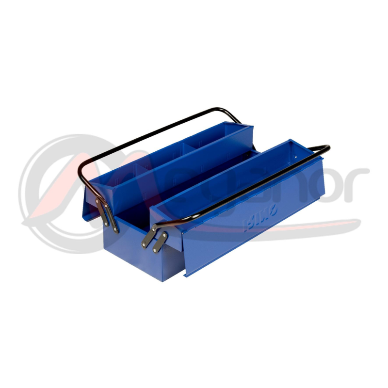 Caixa de ferramentas estilo cantilever com pegas fixas que facilitam muito a abertura da caixa
