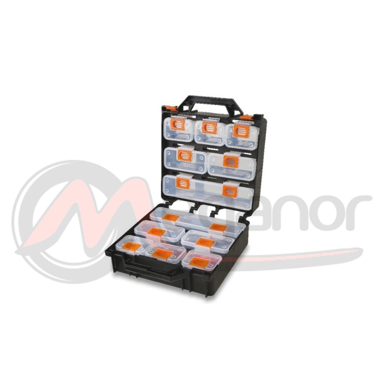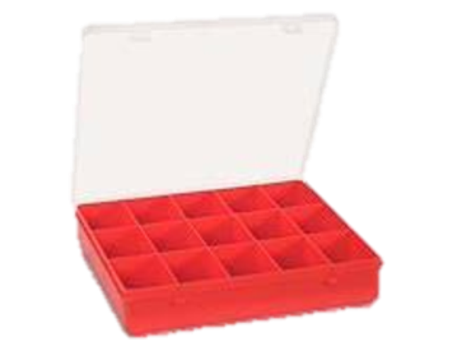 Divisórias fixas nas bandejas superiores para armazenar pequenas peças de forma organizada