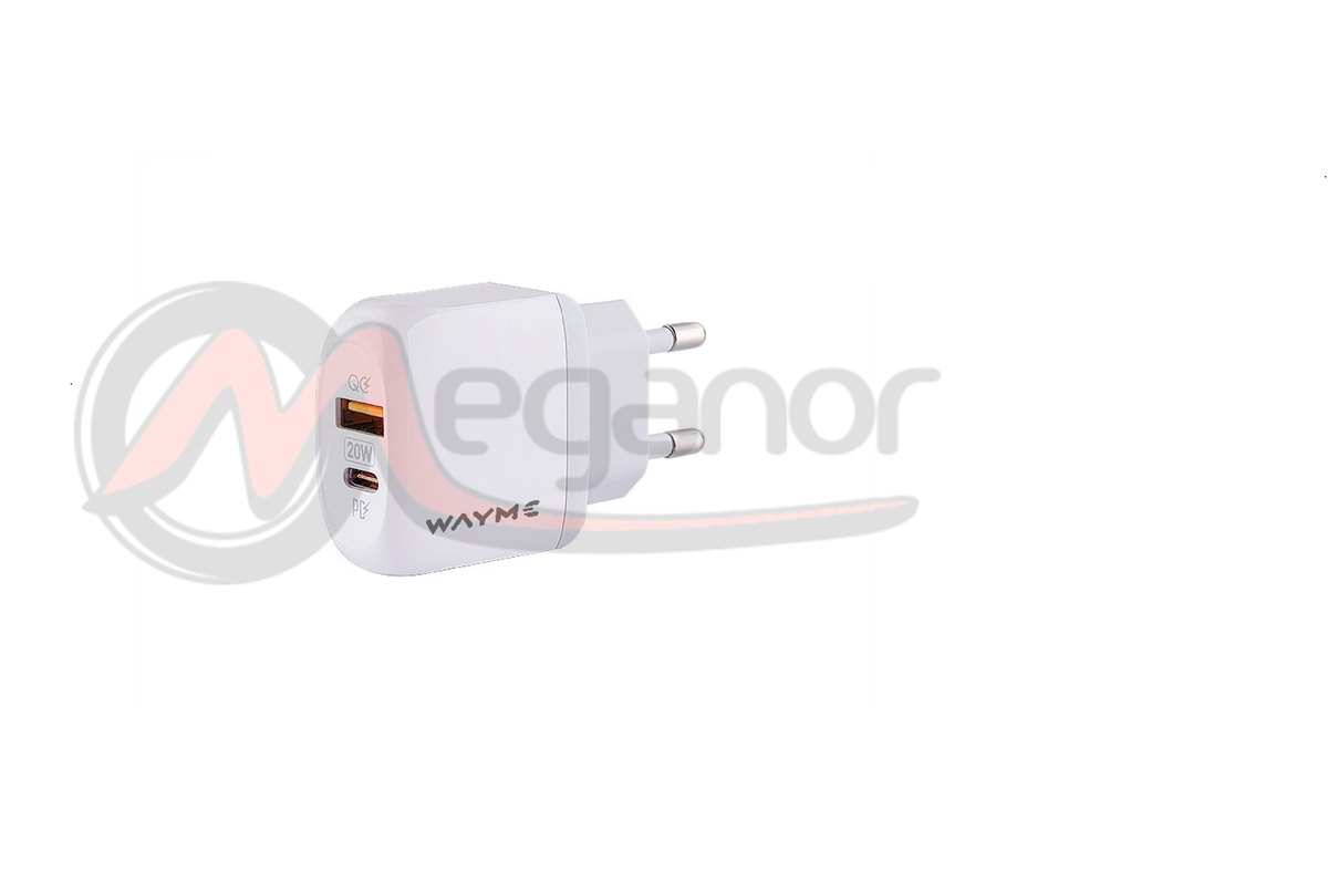 Carregador de parede rápido com portas USB-A QC3.0 e USC-C *PD . Equipado com sistema de refrigeração e proteção multifios.