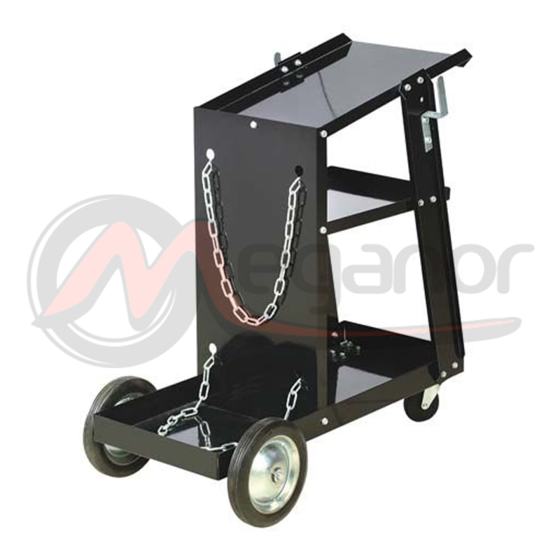 Armação em aço|Tabuleiro de alumínio|Cabo em polipropileno|Roda de borracha de 35 mm|Bandas elásticas incluídas para fixar a carga|Base 487x350 mm