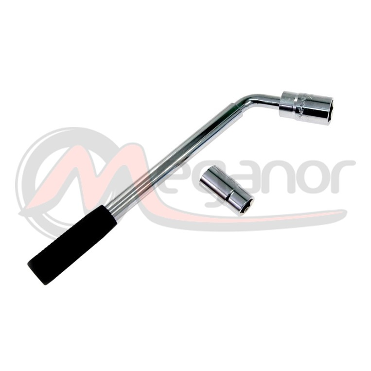 Detalhes: Fabricado em aço resistente a fissuras. O cabo telescópico e antiderrapante (extensão até 510 mm) facilita o trabalho. O conjunto inclui dois anexos: -17x19mm -21x23mm