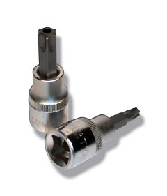 Encaixe: 3/8\" (10 mm)/ Ponta: Torx T-60H (com furo central) /Material: Aço temperado de alta qualidade /Acabamento: Cromado para proteção contra corrosão