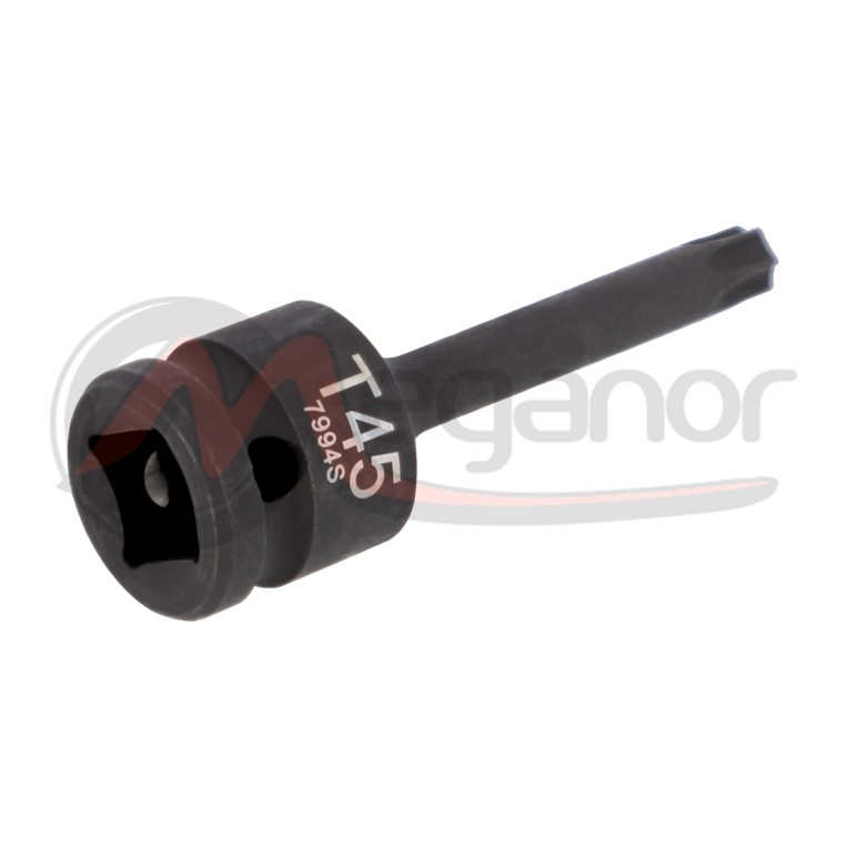 Roquete de bit TORX® de 1/2\"|Acabamento: acabamento em preto|Material: liga de aço de alto desempenho|A utilizar com máquinas|Para máxima segurança, utilizar molas de bloqueio