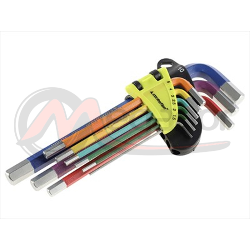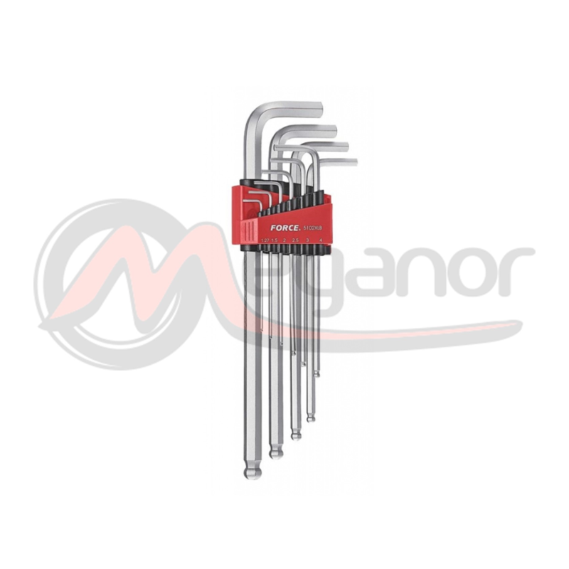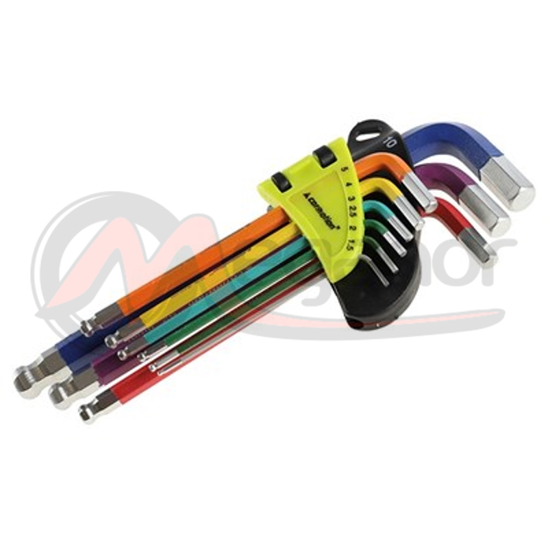 Conjunto chaves em L de ponta hexagonal com extremidade esférica de 9 peças, longo em métrica