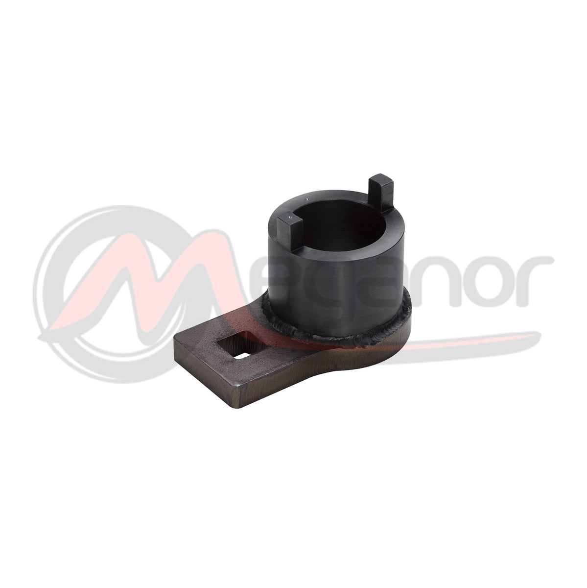 OEsta llave sirve para sujetar la polea de árbol de levas para poder aflojar y apretar las fijaciones de los piñones sin mover los arboles de levas o dañar las otras herramientas de bloqueo. También para el motor 1.3 diesel utilizado por PSA, Fiat y Alfa Romeo.