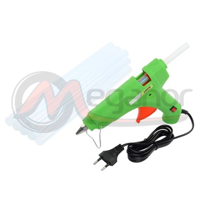 -Esta pistola de cola quente possui um corpo de plástico resistente e um suporte de metal para evitar vazamentos de cola.