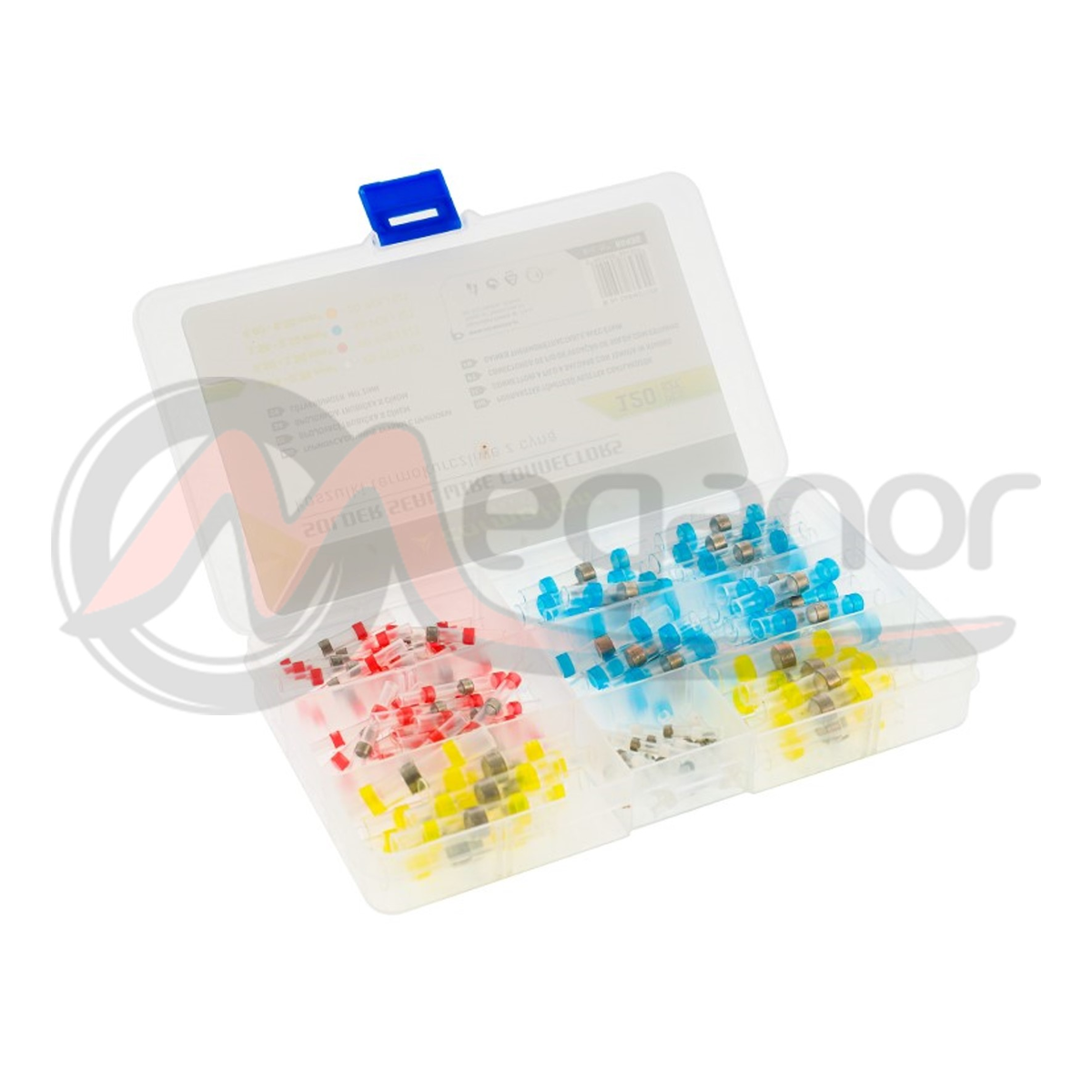 O conjunto contém 120 peças de conectores em 4 cores que indicam os diâmetros dos conectores.