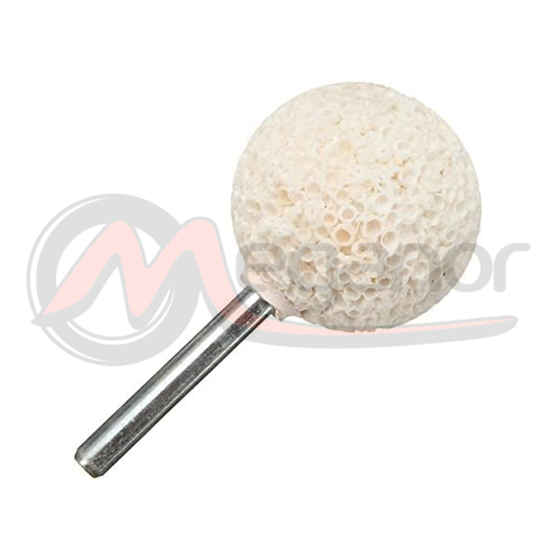O rebolo é baseado em um pino de metal, graças ao qual é possível montá-lo em vários tipos de esmerilhadeiras e brocas equipadas com mandril de liberação rápida.