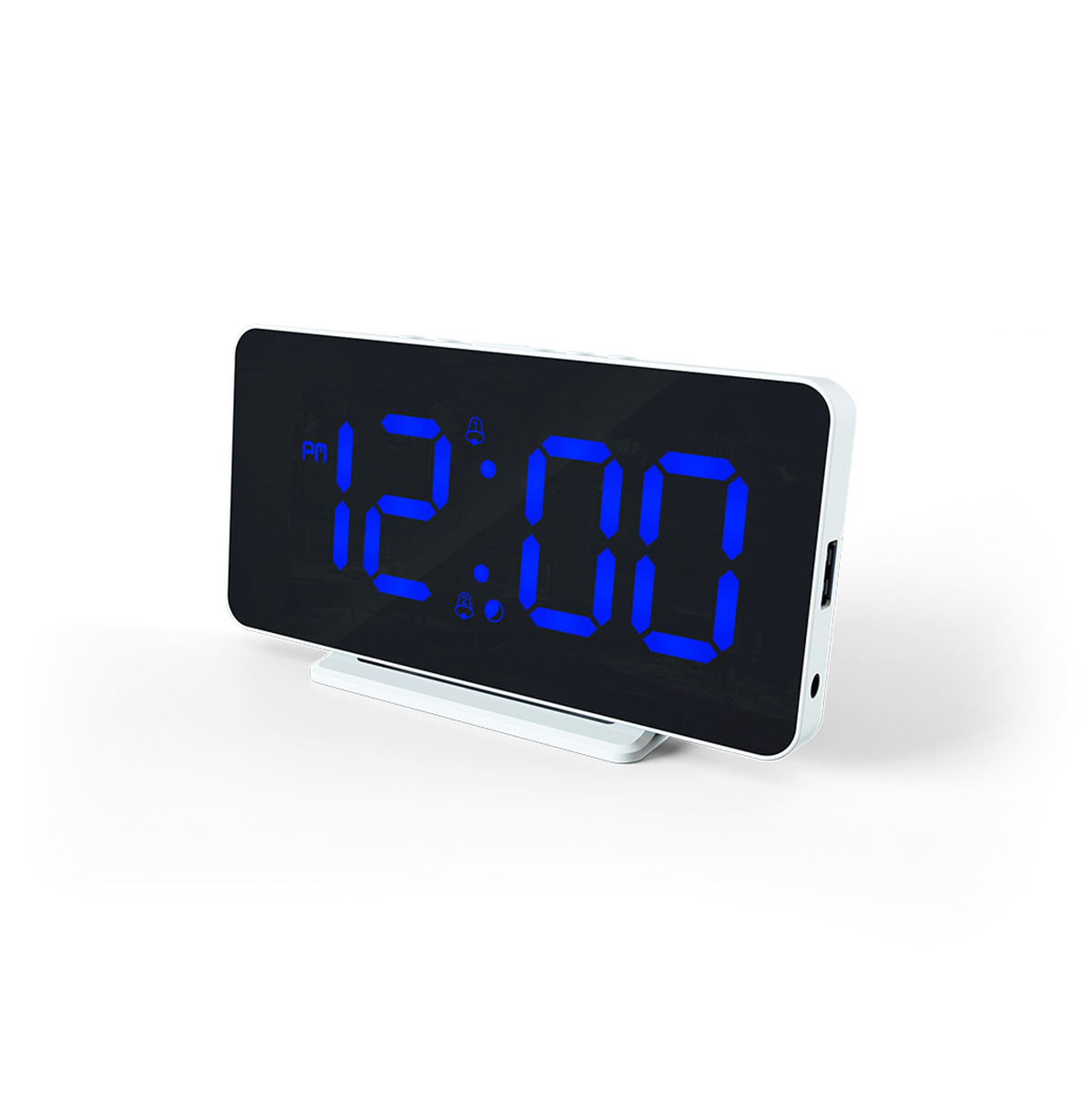 -Design moderno e fino. Coloque-o na base ou fixo à parede. O despertador tem uma saída USB, então você também pode carregar seu telefone.