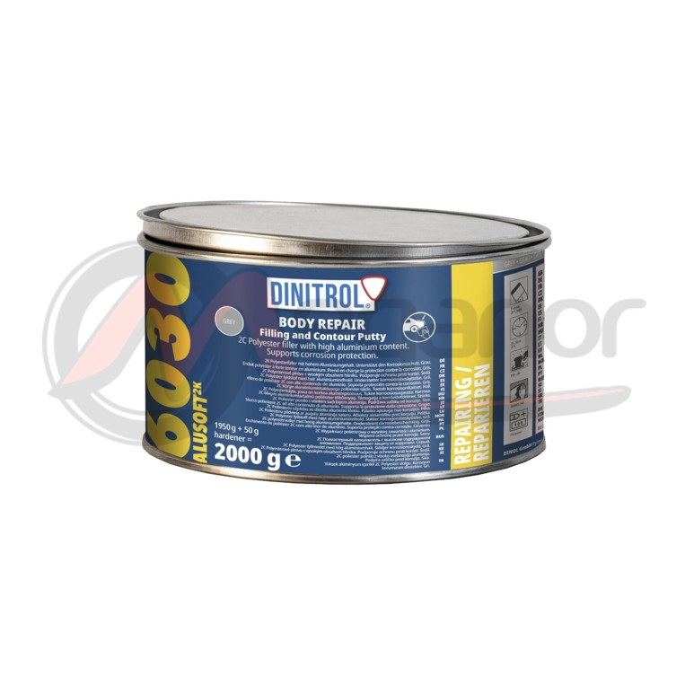 DINITROL 6030 Alusoft é adequado para remover amassados ??de carrocerias de automóveis, construções de chapa metálica, para remover carcaças de máquinas e para reparar concreto, alvenaria, etc.