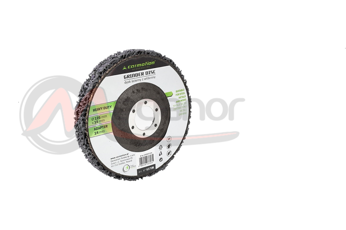 Um rebolo de tecido não montado num disco de fibra de vidro. Uma estrutura e abertura evita que o disco fique obstruído com material limpo.