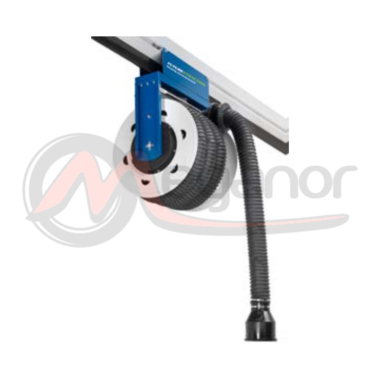 Enrolador de mangueira móvel semiautomático com diâmetro de mangueira indeformável de 75 mm e comprimento de 10 m. Inclui um batente de mangueira ajustável.
