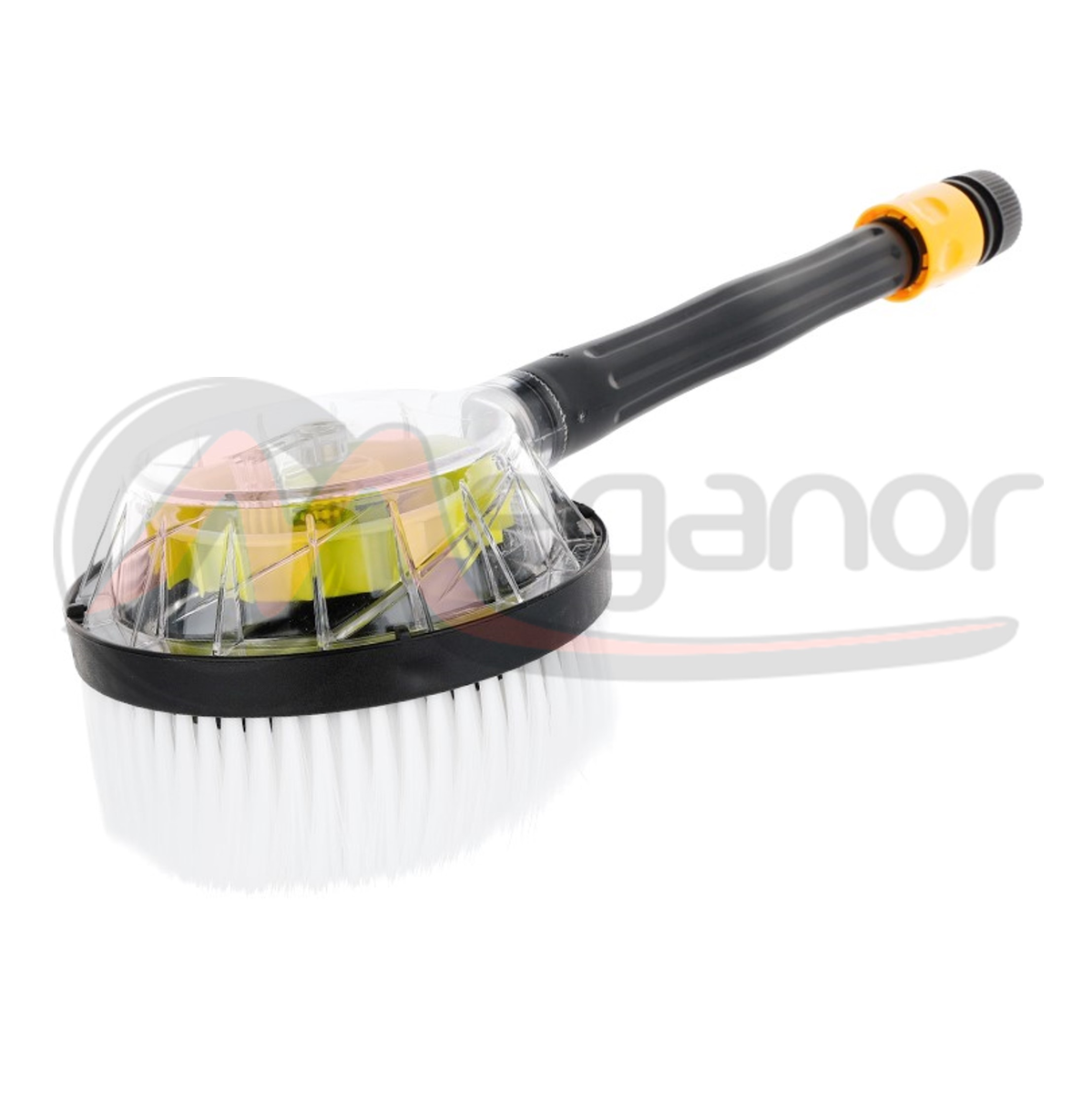 63519 - A escova é acionada pela pressão do fluxo de água da mangueira conectada. Perfeito para lavar carros, jantes, ATVs, bicicletas, ferramentas e móveis de jardim.