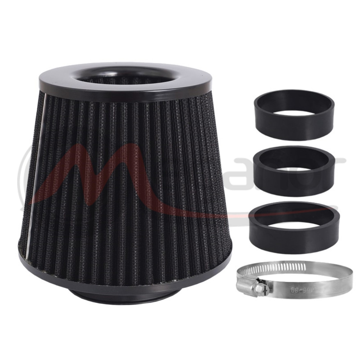 Dimensões 155x130x120mm, confeccionado em algodão, que é revestido com malha de aço inox. A longa vida útil é assegurada pela possibilidade de limpeza e manutenção devido a adaptadores adicionais, adaptado à maioria dos carros. inclui: filtro cônico, 3 adaptadores: 60, 63, 70 mm, braçadeira .