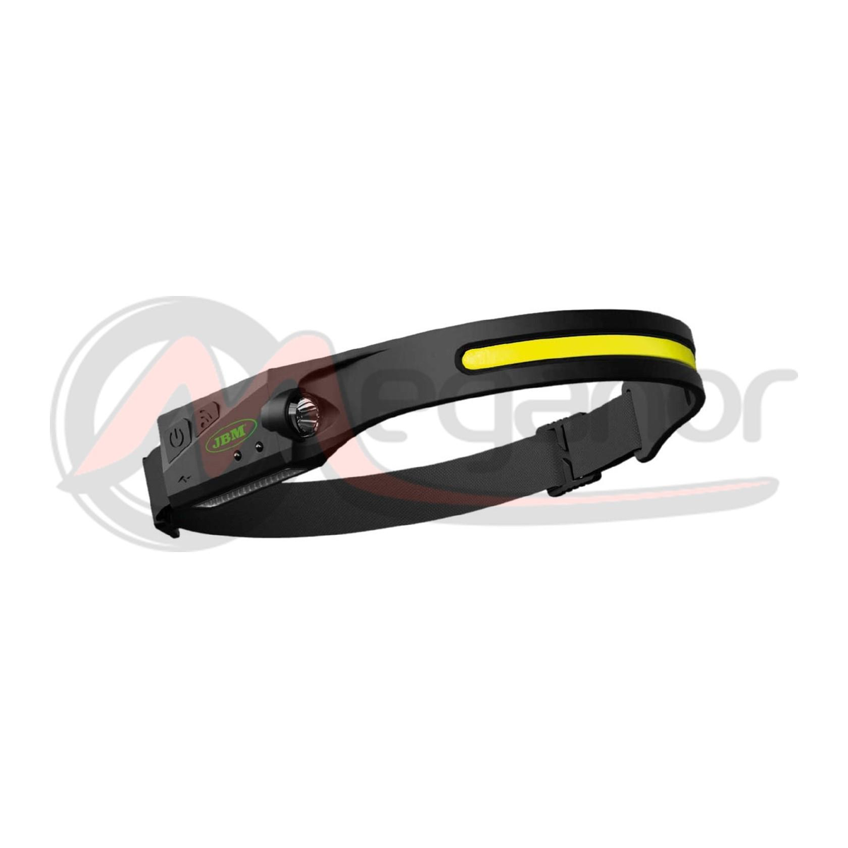 Leds: 3W XPE lateral + 5W COB frontal. Lumens: XPE LED 90lm,COB 350lm. Batería: 3.7V 1200mAh Li-ion. Tempo de carga: 2.5h. Modos y tiempo de trabajo COB: 100% - 2,5h - 350lm. 40% - 5h - 150lm. Flash intermintente - 8h. Modos y tiempo de trabajo XPE lateral: 100% - 4H - 150lm. 40% - 8H - 60lm. Material: Gel de sílice. Indicador de encendido, indicador de inducción. Modo de activación por sensor de movimiento. Cabo de carga USB incluido. Peso:70g. Botón sensor de movimiento. Pulsar para activar/desactivar. Pasar la mano por delante del botón para encender y apagar la luz.