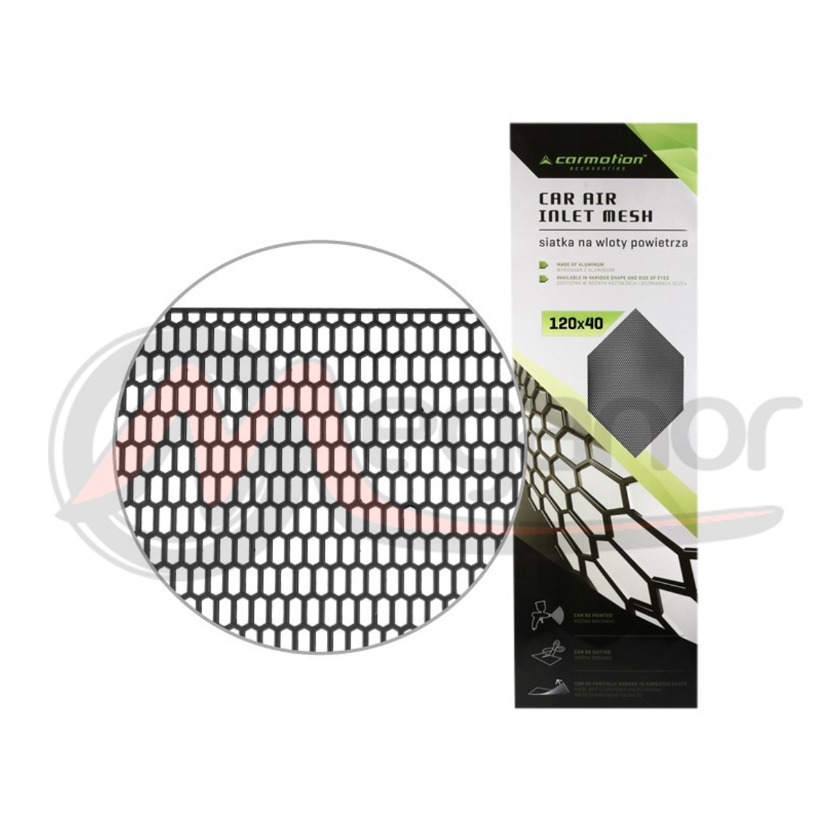86749 - Grade de malha feita de plástico ABS de alta qualidade. Ideal para instalação na frente do carro. Isso dará a cada carro um caráter mais agressivo e de design. Grelha Honeycomb Mesh, dimensões 9x17 mm. Dimensões da folha: 120x40 cm