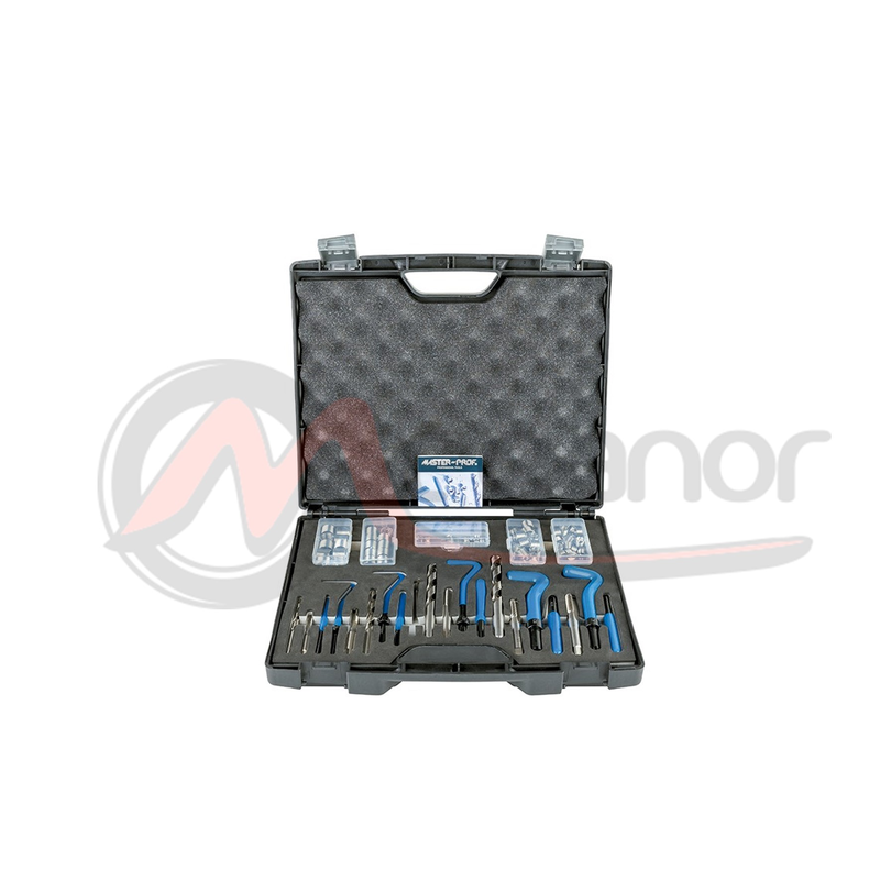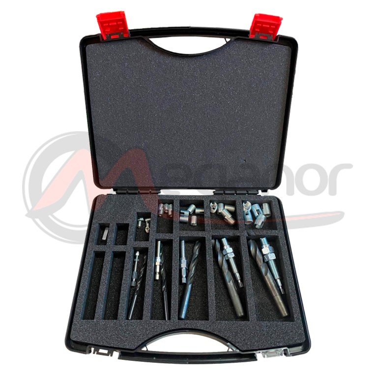 O kit de reparo métrico cria roscas internas mais fortes na maioria dos metais e ajuda a restaurar o tamanho original da rosca.