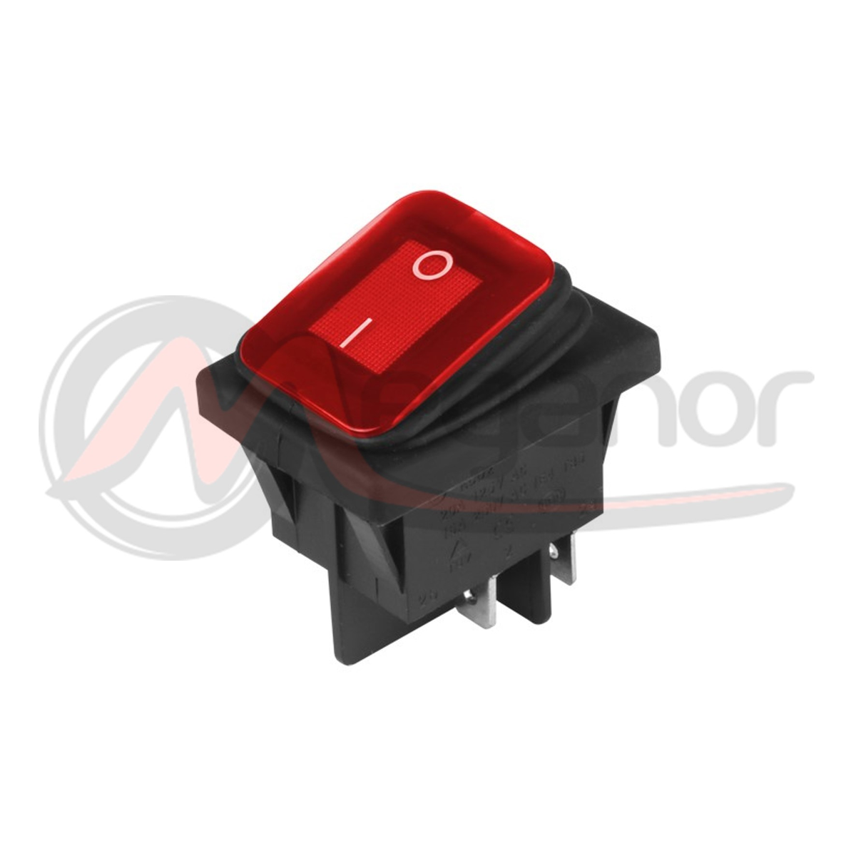 Interruptor hermético com indicador LED vermelho. O indicador acende na posição ON .