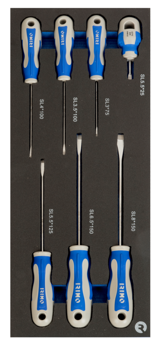- Chaves de fenda elétricas retas: 0,5x3x75; 0,6x3,5x100; 0,8x4x100; 1x5,5x125; 1,2x6,5x150
