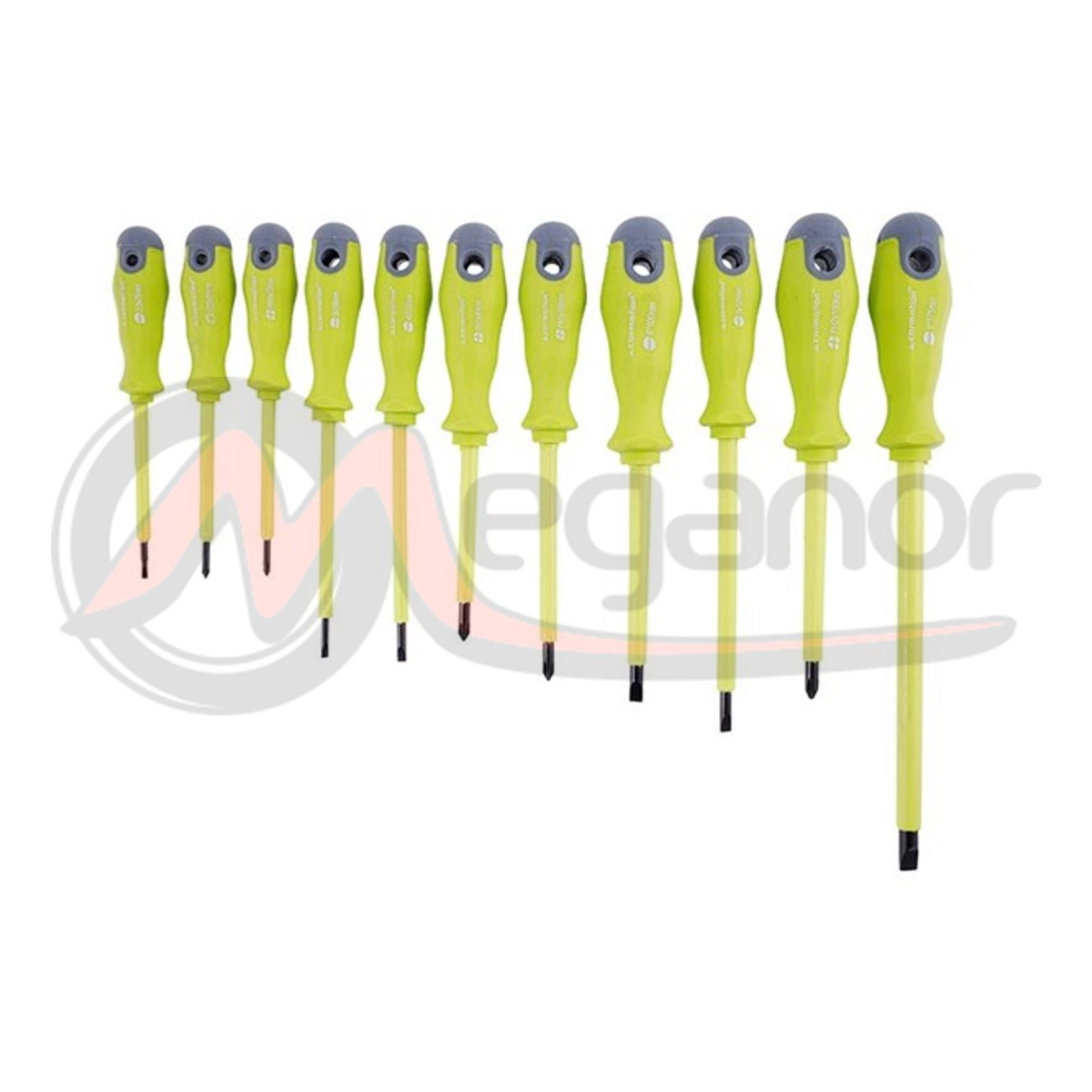 Detalhes: O conjunto inclui: chaves de fenda planas: 2,5 x 75 3 x 100 4 x 100 5 x 125 6 x 100 8 x 175 Chaves de fenda Phillips: PZ 0 x 75 PH 0 x 75 PH 1 x 80 PH 1 x 100 PH 2 x 100