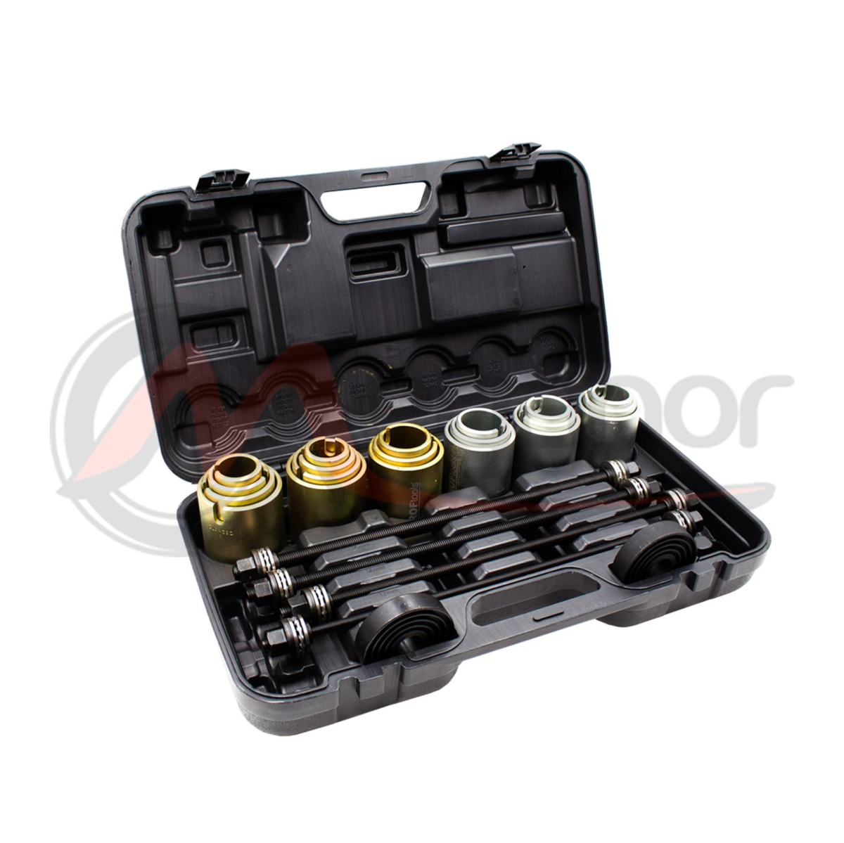 Aplicação: Casquilhos com aplicação universal para a maioria das marcas. Facilita o trabalho para remover e instalar: rolamentos, sinoblocos, sinoblocos hidráulicos, casquilhos manga eixo Fusos: M10,M12,M14,M16