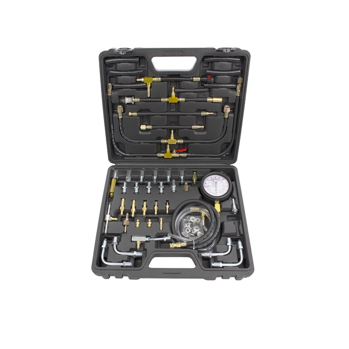 Kit completo de mangueiras, adaptadores e acessórios para testar a pressão nos sistemas modernos de injeção de combustível de gasolina